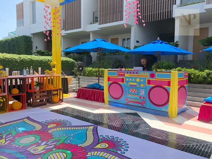 ✨ Theme-Based DJ Setup by Floroon – Sangeet & Reception ✨ Transform your wedding celebrations into a visually stunning, high-energy experience with our theme-based DJ setups. Each setup is carefully customized to match your wedding theme, creating the perfect ambiance for your Sangeet and Reception. Our Theme-Based DJ Setup offerings include: • Customized Theme Design – DJ stage and décor designed to match your chosen wedding theme, such as Royal, Carnival, Disco, White Angel, or Sahi Raja & Rani• Sound & Lighting Integration – High-quality audio systems paired with coordinated lighting, LED effects, and stage props for a show-stopping visual experience• Special Effects & Stage Add-ons – Smoke machines, CO2, dry color, sparkular spinners, bubbles, and confetti perfectly synced with the music• Performance Coordination – Seamless integration with Sangeet dance performances, couple entries, and grand Reception moments• Venue Adaptation – Indoor or outdoor setups tailored to your venue and guest
