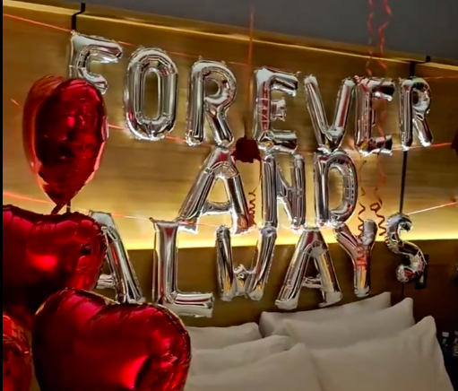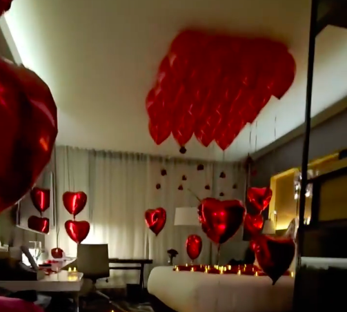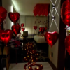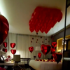 - 50 Red Balloons on Ceiling with Hanging Ribbons and 5 roses